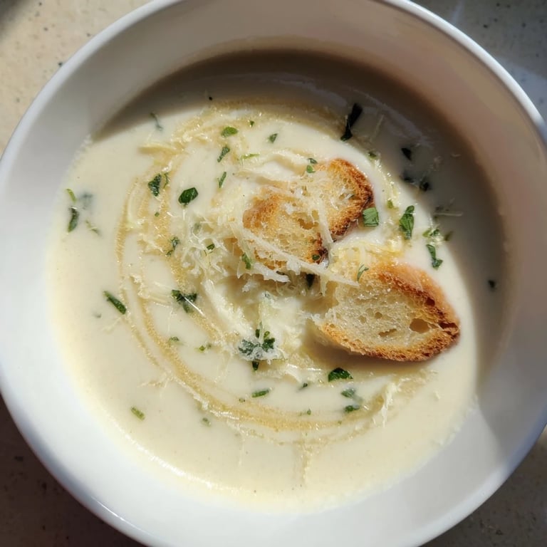 The recipe as written is perfect, but I've learned that small additions make it feel like yours rather than someone else's formula. Red pepper flakes scattered on top add a whisper of heat that nobody expects in a creamy soup, and crispy croutons fried in garlic oil add a textural contrast that keeps it from feeling too smooth and one-textured. Some evenings I add a splash of white wine after the garlic toasts, or a tiny pinch of nutmeg stirred in with the cream, which sounds strange until you taste how it rounds out the flavor and makes everything taste more sophisticated without announcing itself.