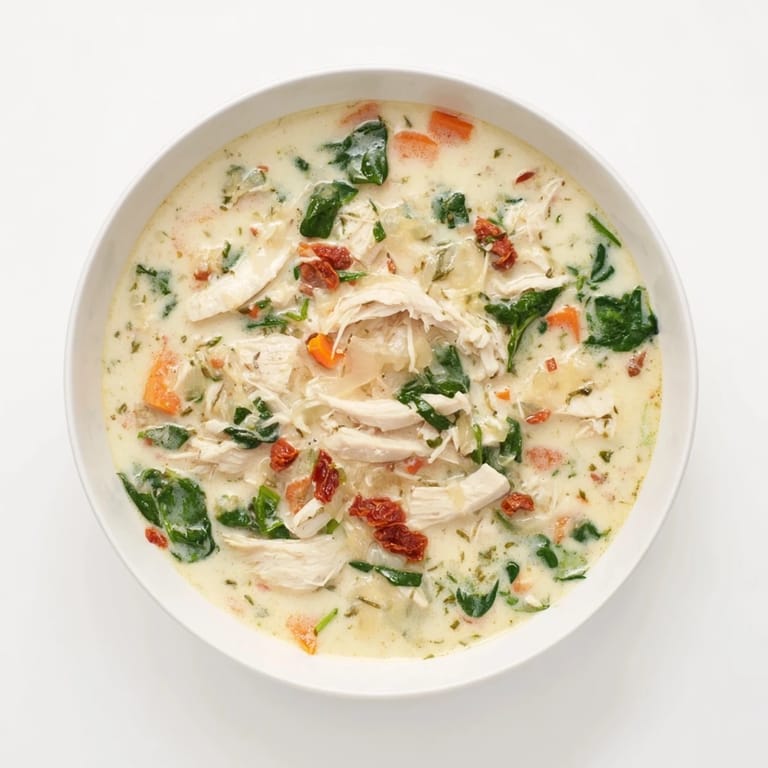 If you want more body, stir in a can of drained cannellini beans along with the chicken. They'll soak up the creamy broth and make the soup hearty enough to be the entire meal. I've also swapped spinach for chopped kale when that's what I had wilting in the fridge, and it held up beautifully, adding a slightly heartier bite. For a deeper flavor, try roasting the carrots and onions in the oven first before adding them to the pot.