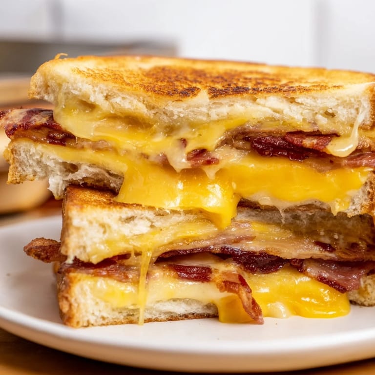 Save to Pinterest There's something about the sound of bacon sizzling in a cast iron skillet that stops me in my tracks. A few years back, I was rushing through a Tuesday afternoon when my partner wandered into the kitchen with that look—the one that meant they were hungry and had exactly zero patience for anything complicated. I grabbed what was in the fridge: good sourdough, sharp cheddar, and some bacon strips that had been calling my name all week. Twenty minutes later, we were biting into something golden and perfect, and I realized this wasn't just lunch—it was the kind of simple meal that reminds you why cooking matters at all.
