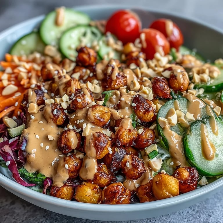 Save to Pinterest There's something about the smell of chickpeas crisping up in the oven that makes you feel like you're actually taking care of yourself. I discovered this bowl on a Tuesday afternoon when I had half a can of chickpeas left over and absolutely no desire to cook anything complicated. The combination of crispy, salty legumes with creamy peanut sauce felt like the kind of meal that could satisfy both my hunger and my need to feel accomplished in the kitchen. What started as lazy improvisation became my go-to weeknight dinner, and now I make it so often that my friends joke I should trademark it.