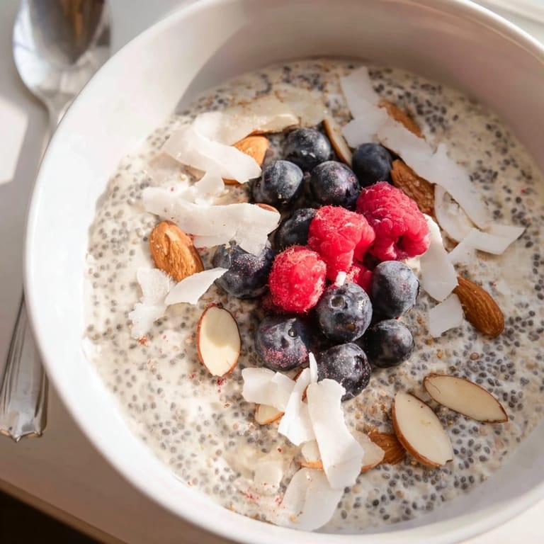 Chia seeds provide omega-3 fatty acids, fiber, and protein, while poppy seeds add minerals like manganese and copper. This pudding is gluten-free, high in plant-based protein, and packed with antioxidants from optional berry toppings. It's an excellent choice for sustained energy and digestive health.